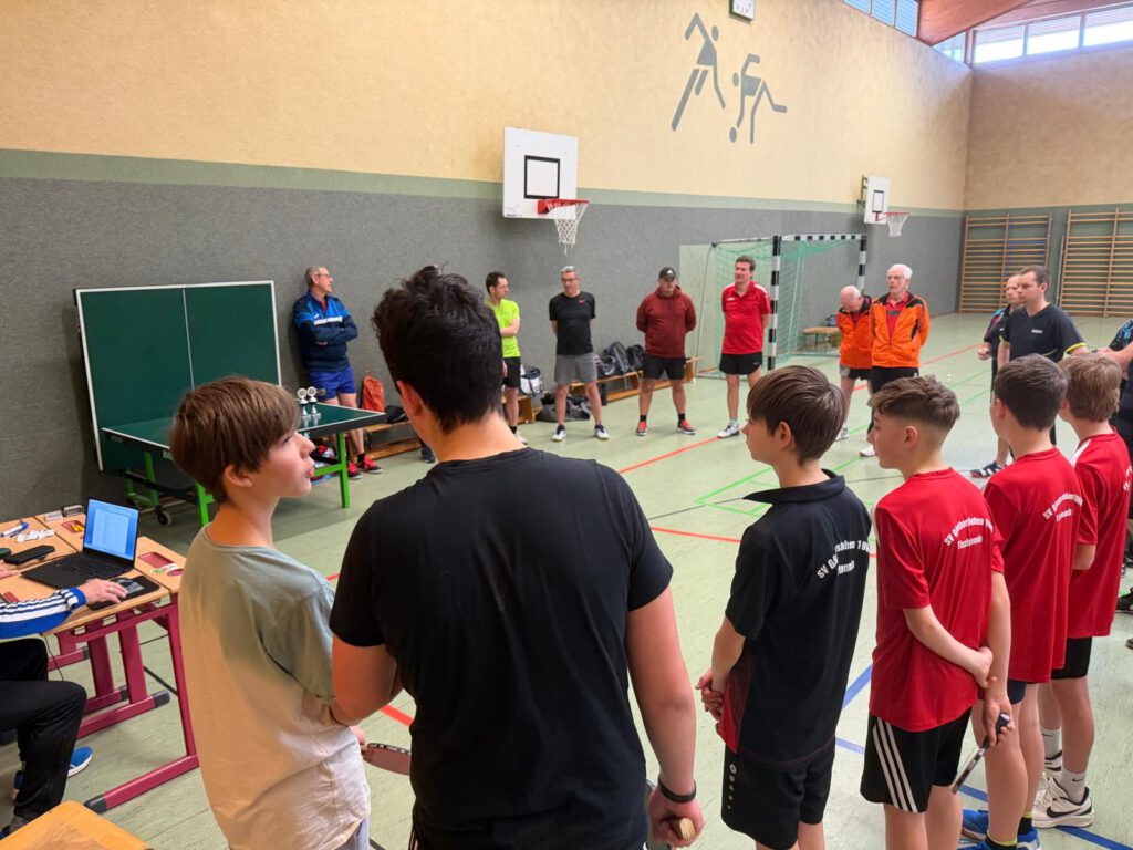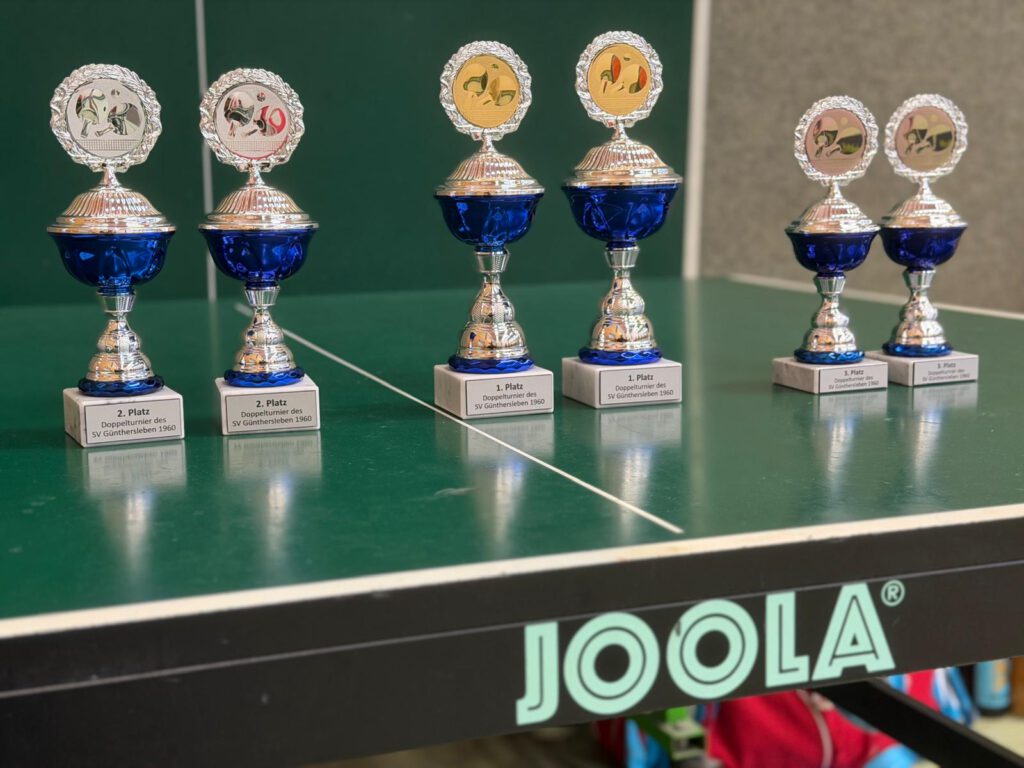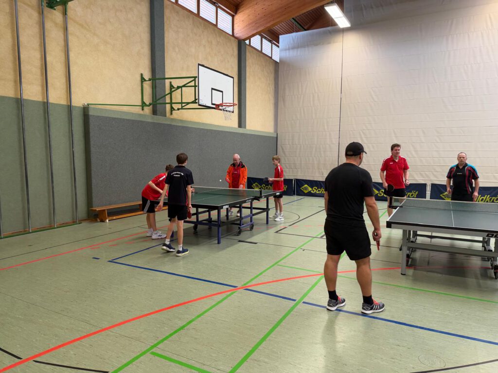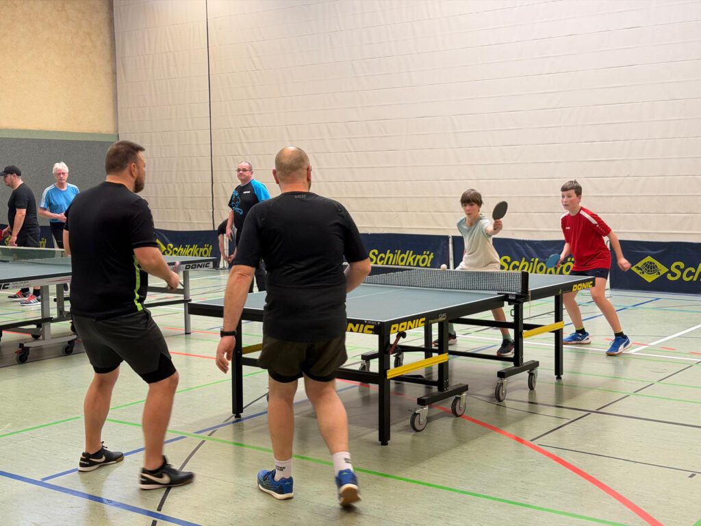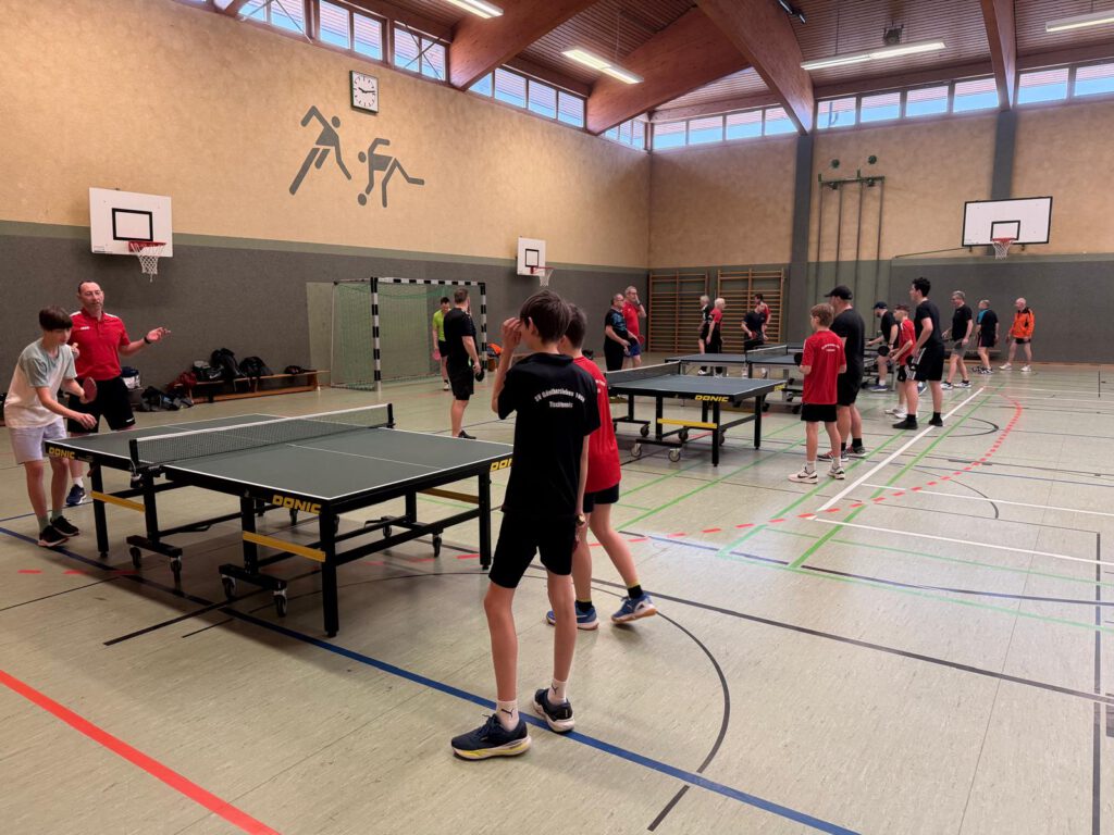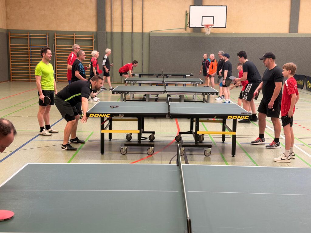 An unserem TT-Doppelturnier beteiligten sich insgesamt 20 Sportfreunde. Gespielt wurde nach einem Bonussystem bei dem Nichtaktive und Nachwuchssportler auch entsprechende Chancen hatten. Das Interessante dabei ist, dass nach jeder Partie neue Doppelpaarungen ausgelost wurden. Nach insgesamt 10 Vorrundenspielen mit 3 Sätzen bis 15 wurden dann nach dem Ranking die einzelnen Platzierungsspiele durchgeführt.
