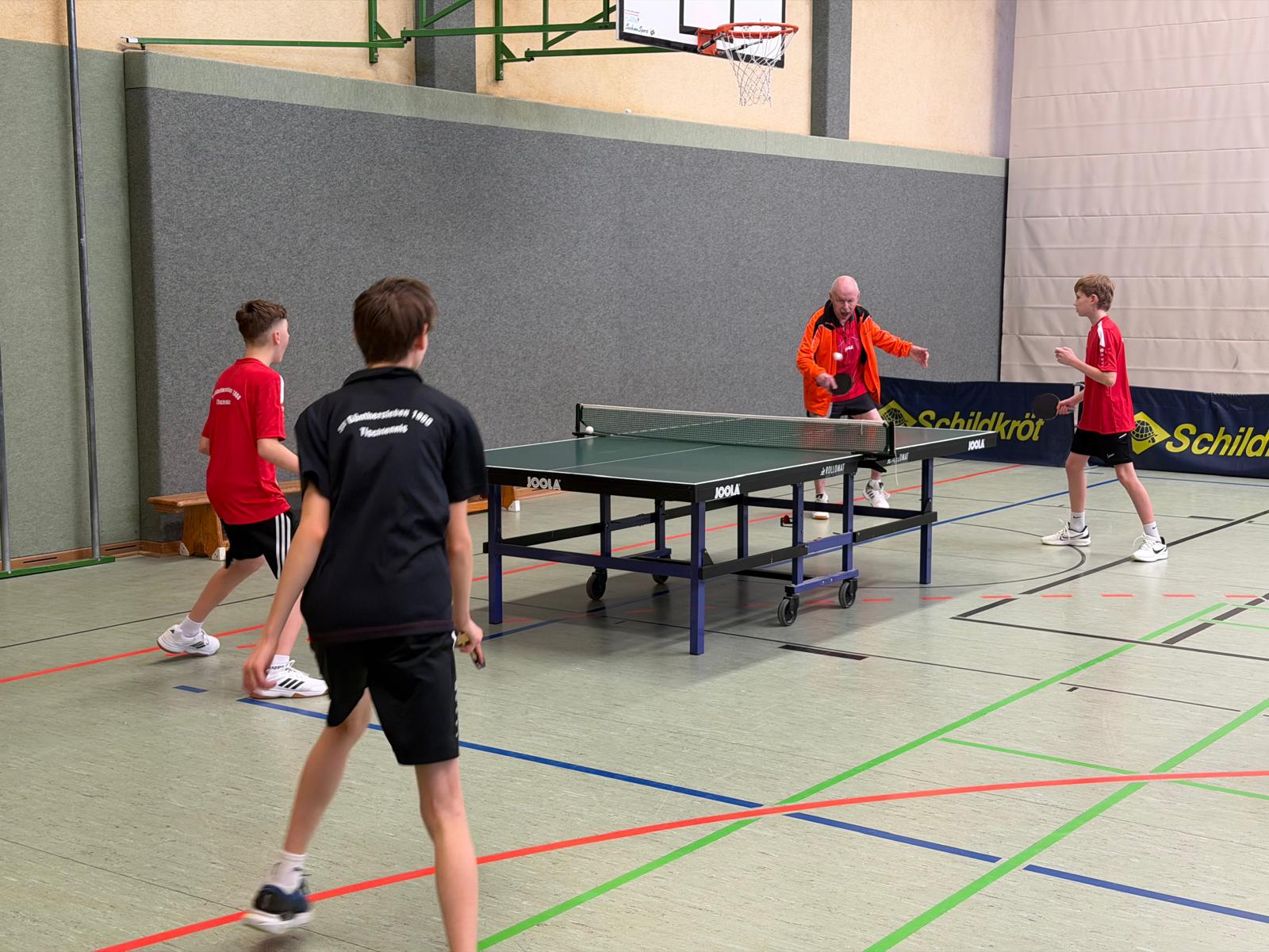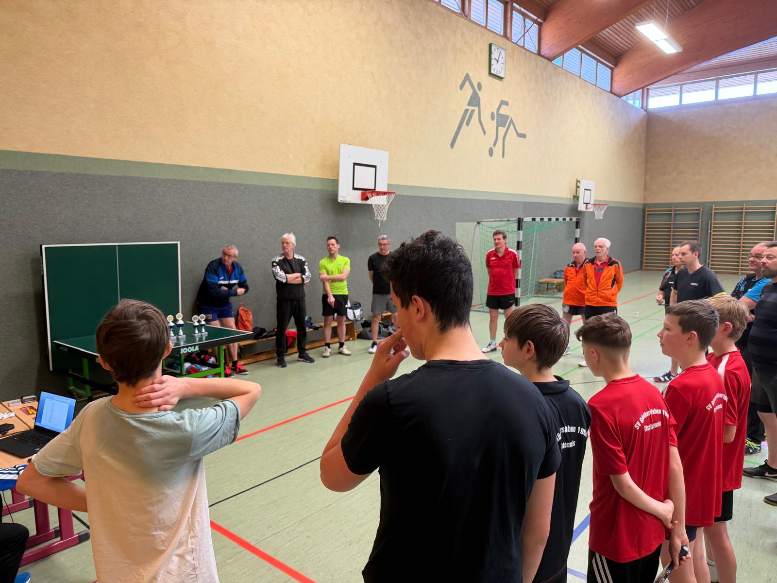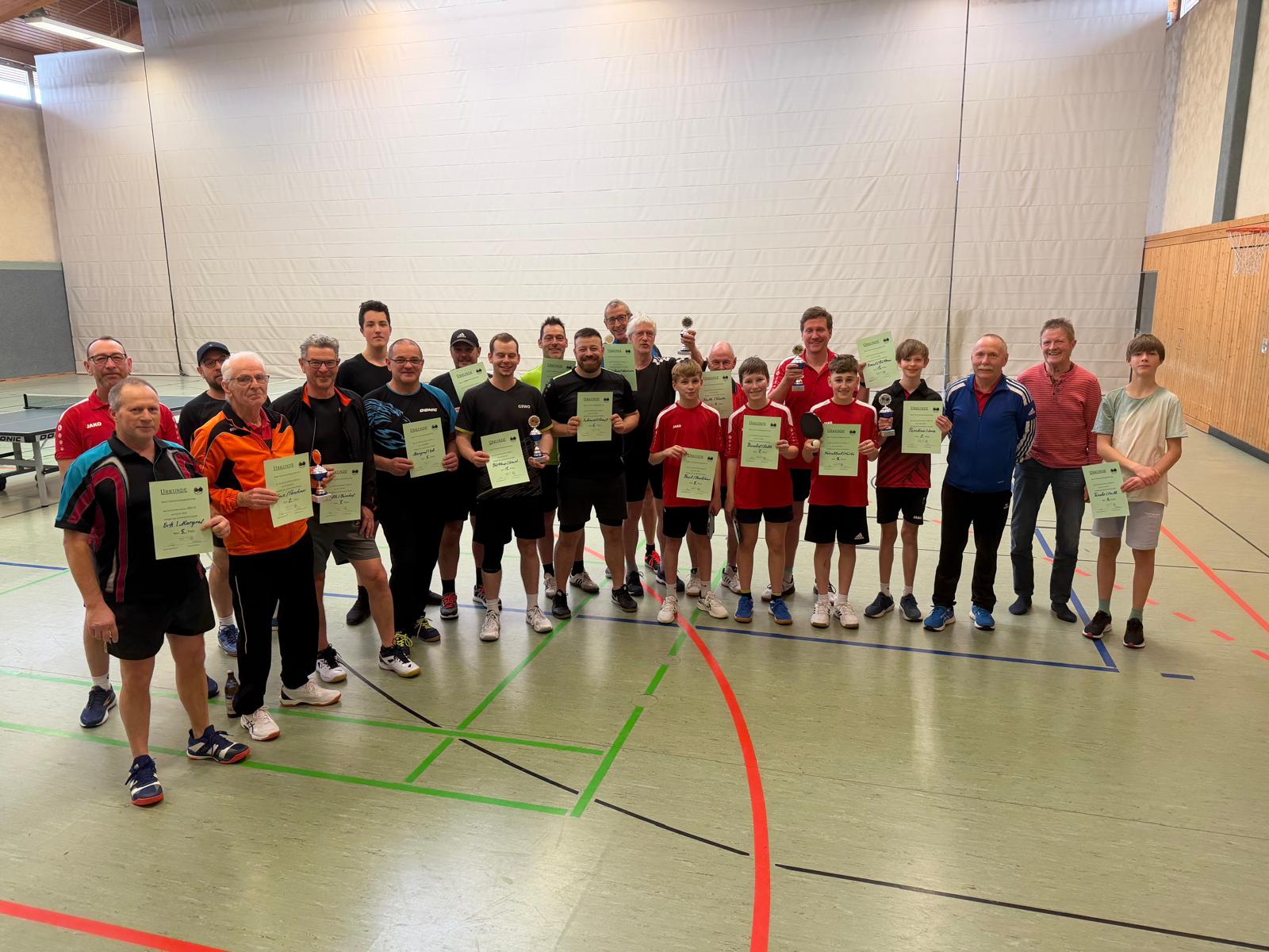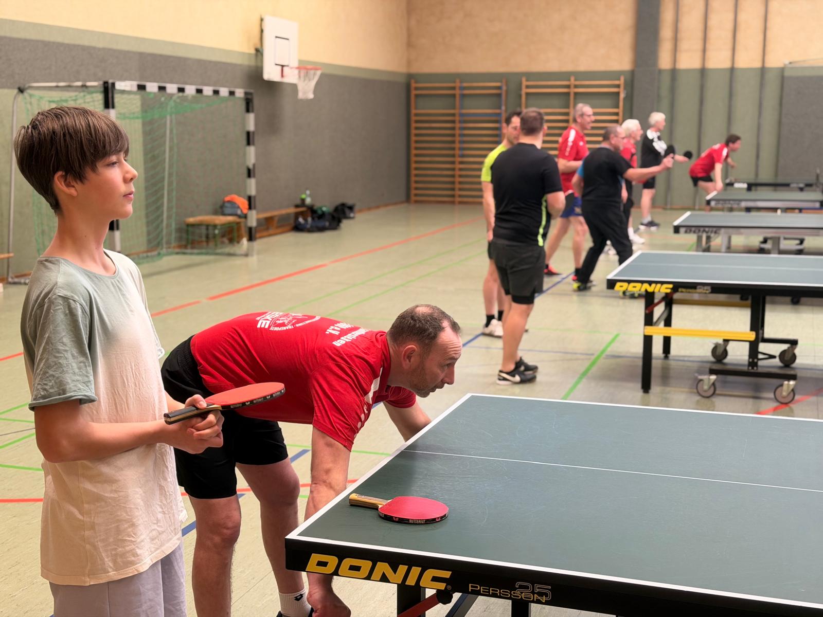 An unserem TT-Doppelturnier beteiligten sich insgesamt 20 Sportfreunde. Gespielt wurde nach einem Bonussystem bei dem Nichtaktive und Nachwuchssportler auch entsprechende Chancen hatten. Das Interessante dabei ist, dass nach jeder Partie neue Doppelpaarungen ausgelost wurden. Nach insgesamt 10 Vorrundenspielen mit 3 Sätzen bis 15 wurden dann nach dem Ranking die einzelnen Platzierungsspiele durchgeführt.
